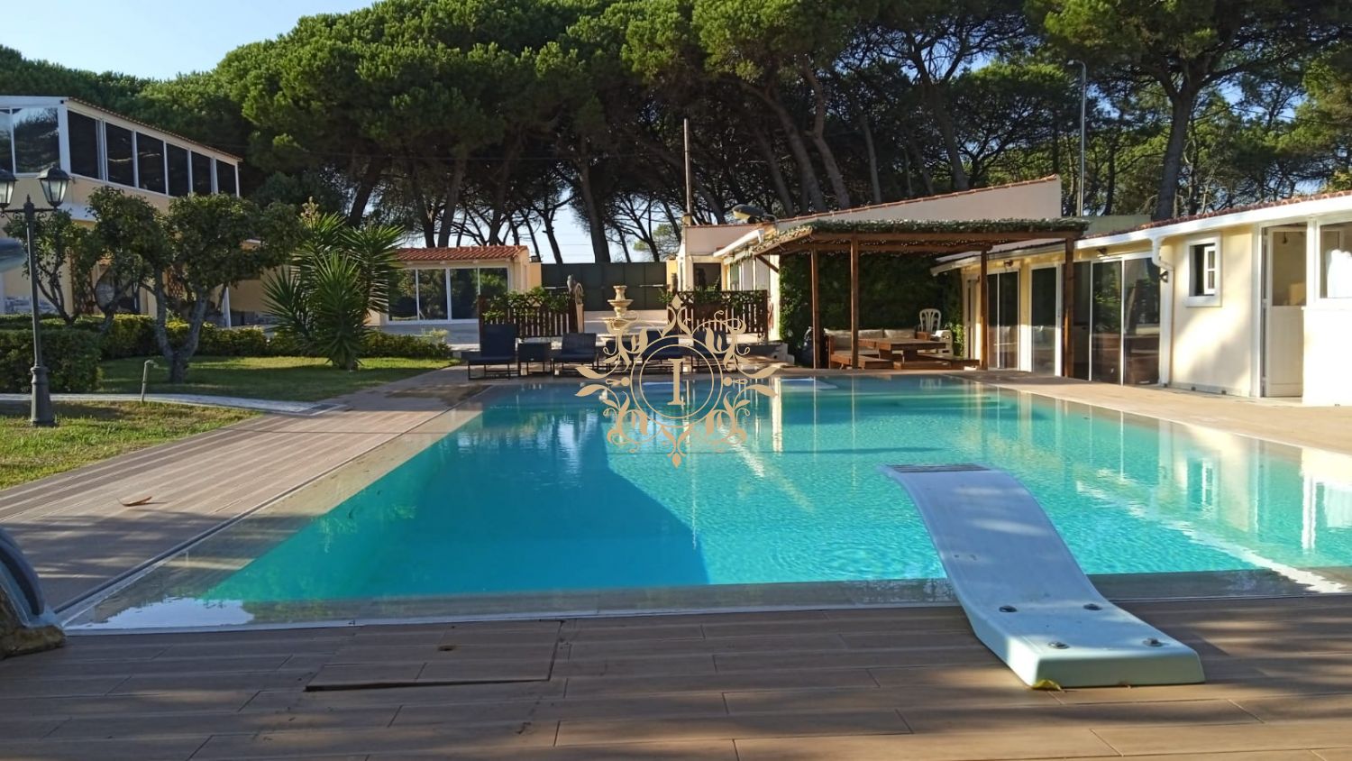 Quinta c/ Moradia V3 c/ piscina Área total do terreno: 1.651 m² : Área de implantação do edifício: 346,77 m² : Área bruta de construção: 341,08 m² : Área bruta dependente: 123,08 m² : Área bruta privativa: 218 m² : Área Descoberta: 1304,23 m² Composto; Piso 0 Sala + cozinha em open space 48,70 m² equipado; Lavanderia 3,92 m² equipado; Sala de estar 17,75 m² com recuperador de calor; 3 Quartos, Suíte 18,70m² c/ closet , WC suíte 3,90m² Base de duche, sanita e lavatório, aquecedor de toalhas; 2 quartos de 9,03 m² e 9,15 m², ambos c/ roupeiro; Wc serviço 10,74 m² c/ lavatório duplo, banheira de hidromassagem, cabine hidromassagem, aquecedor de toalhas. Piso 1 Sala 57,20 m² c/ closet, Terraço fechado em marquise 20,02 m²; WC serviço 6,50 m² c/ Lavatório, banheira de hidromassagem, cabine de hidromassagem, aquecedor de toalhas Aquecimentos elétricos individuais; estores elétricos, geridos por telefone; Vídeo vigilância. Exterior; Piscina de transbordo c/ jacuzzi, água aquecida, eliminada; Jardim c/ rega automática programada; Biblioteca + WC “Telheiro” 21,70 m²; Sala 36,80 m² “Arrumos” ; Garagem para 2 carros + Sala 69,40 m²; Arrumos “Canil” 7,19 m²; Cozinha equipada de apoio à piscina “19,55m²; Pergola; WC c/ Sauna 12,88 m²; Casa de motor 4 m²; Furo Portões automáticos de acesso aos veículos, Calçada Portuguesa nas zonas de circulação Venda em conjunto com lote de terreno rústico Área total 840 m², junto à Quinta. Escritura a ser celebrada nos termos do art.ª 19, decreto lei nº10/2024, de 8 de Janeiro (SIMPLEX)