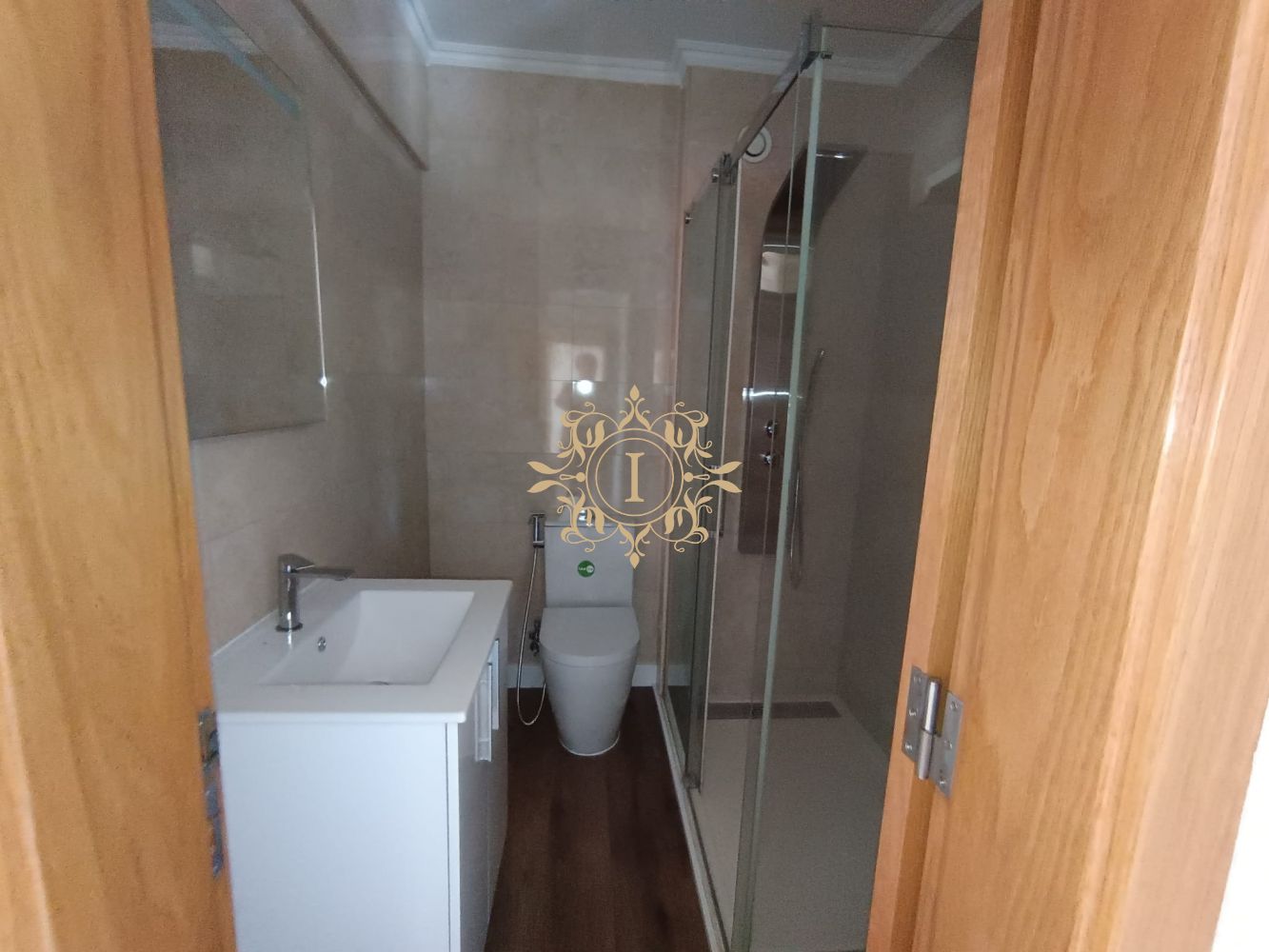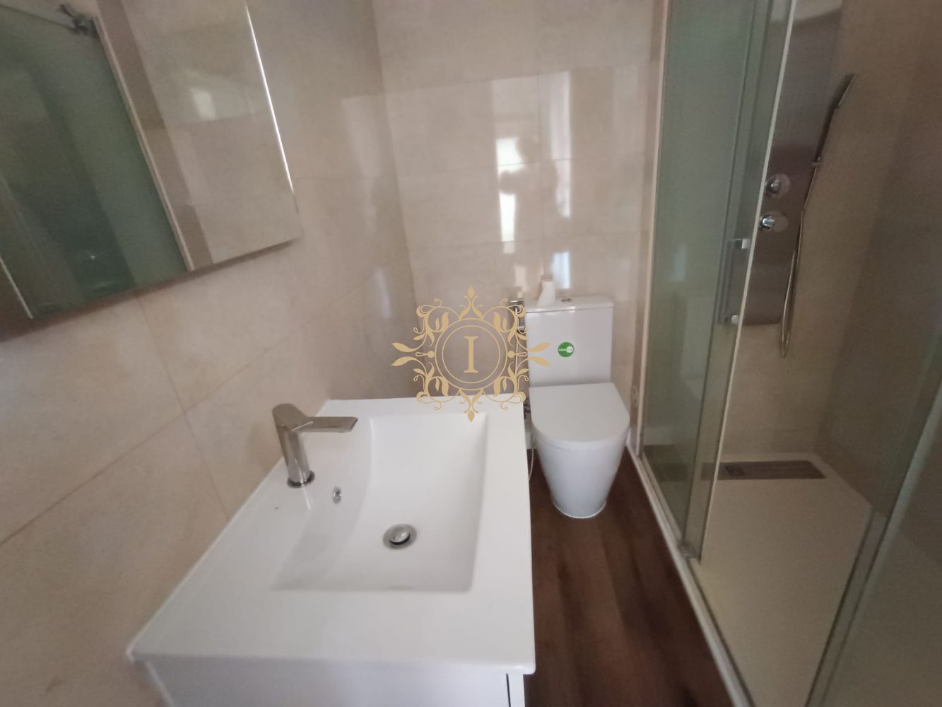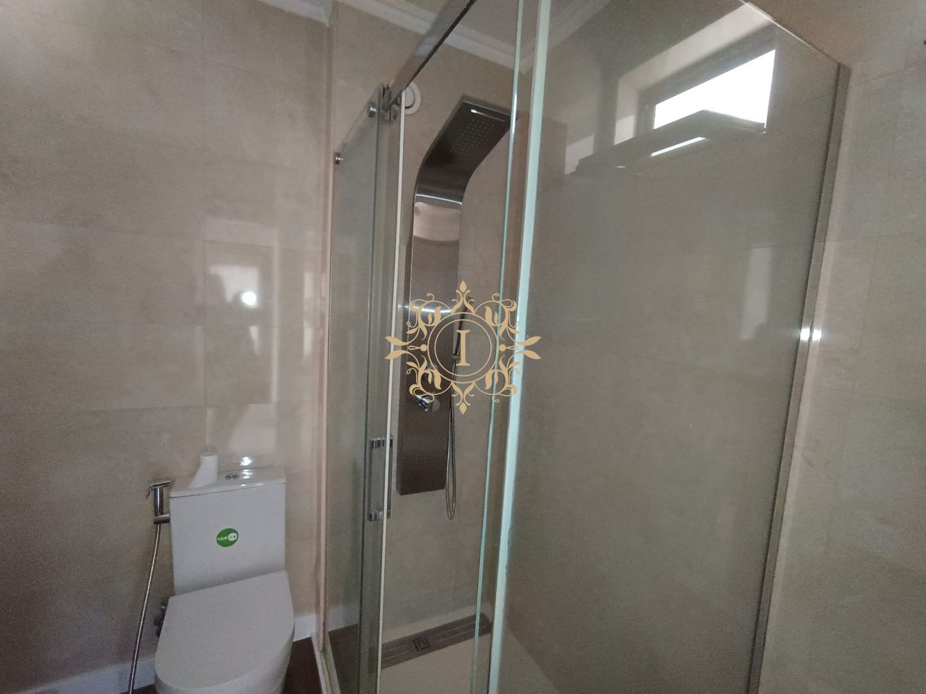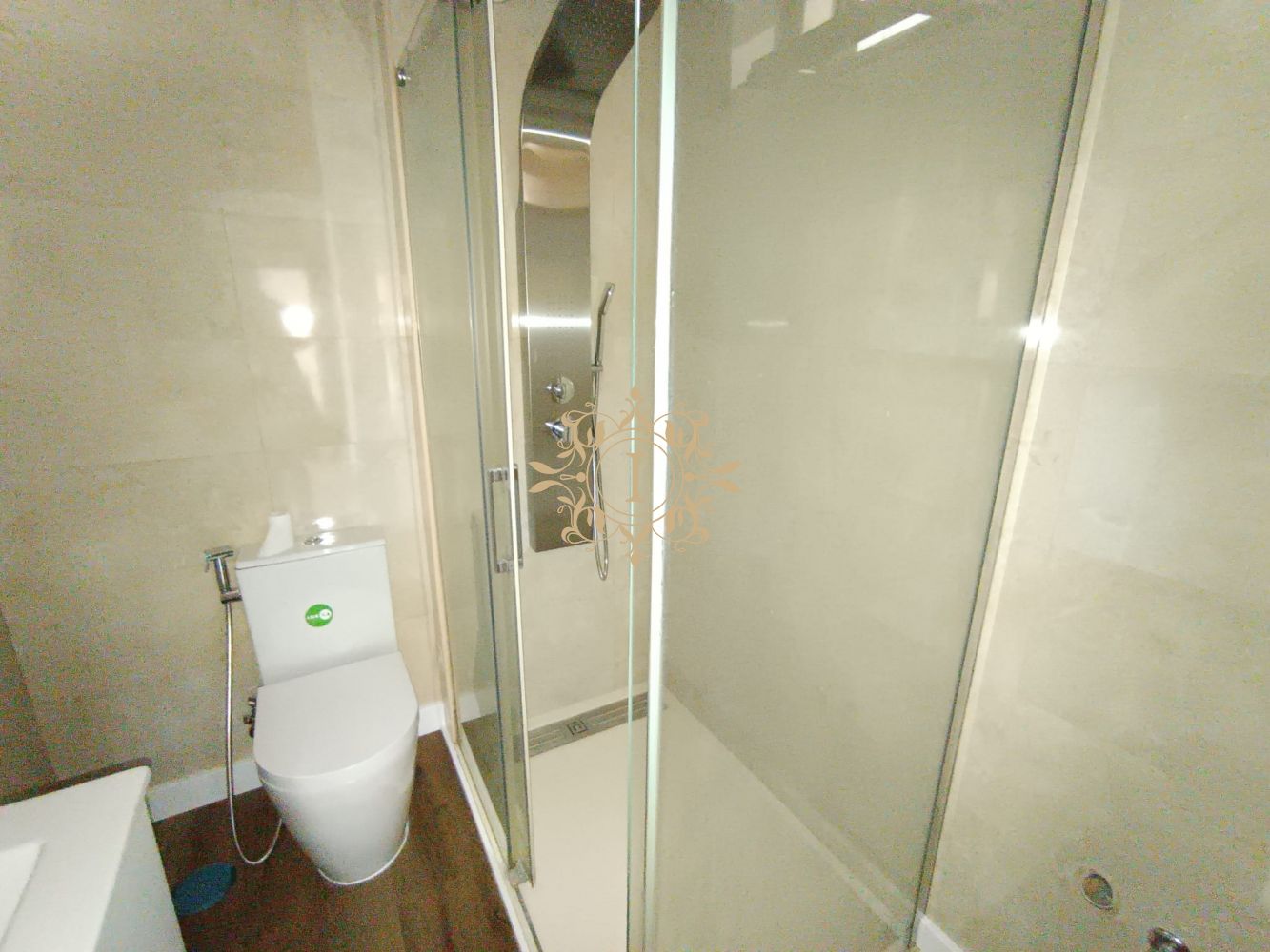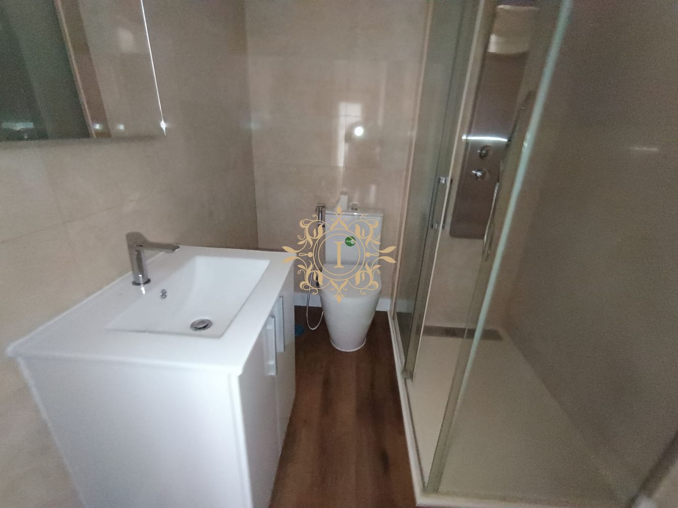 O WC apresenta base de duche moderna.
